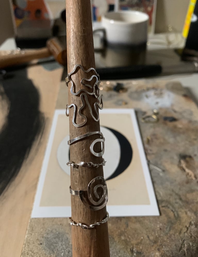 You will shape and hammer your choice of recycled sterling silver or recycled brass wire into this design, using jewellery making tools. This is a simple process and suitable for beginners. Please note, due to the constraints of the venue, we cannot use blowtorches or any soldering equipment on site. As such, your piece will be finished and polished by me after the workshop and posted out around one week after the event.
