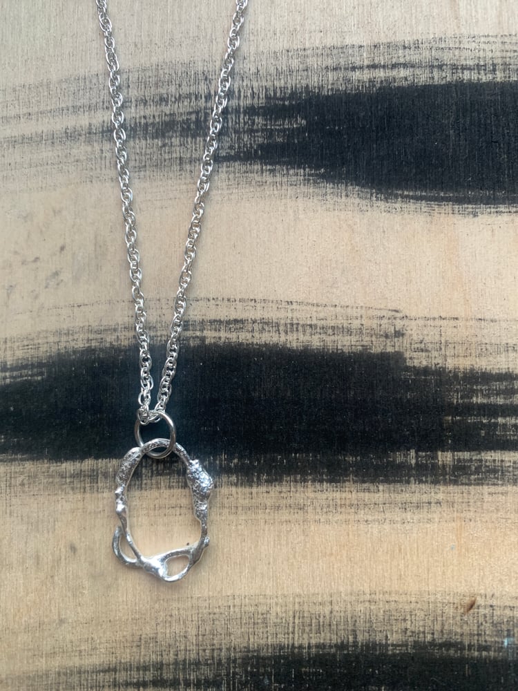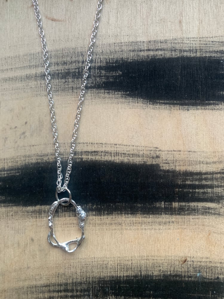 Sterling silver organic shaped pendant. Made by melting and fusing together many silver circles.
