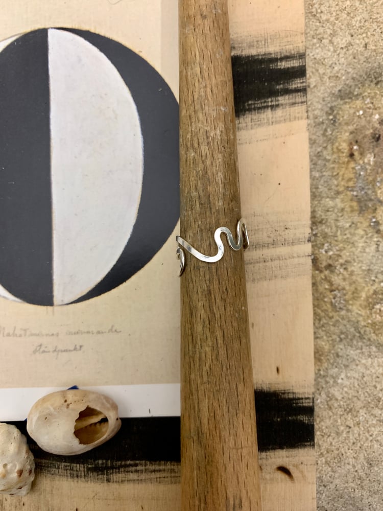 Hammered swirly ring made from recycled silver.