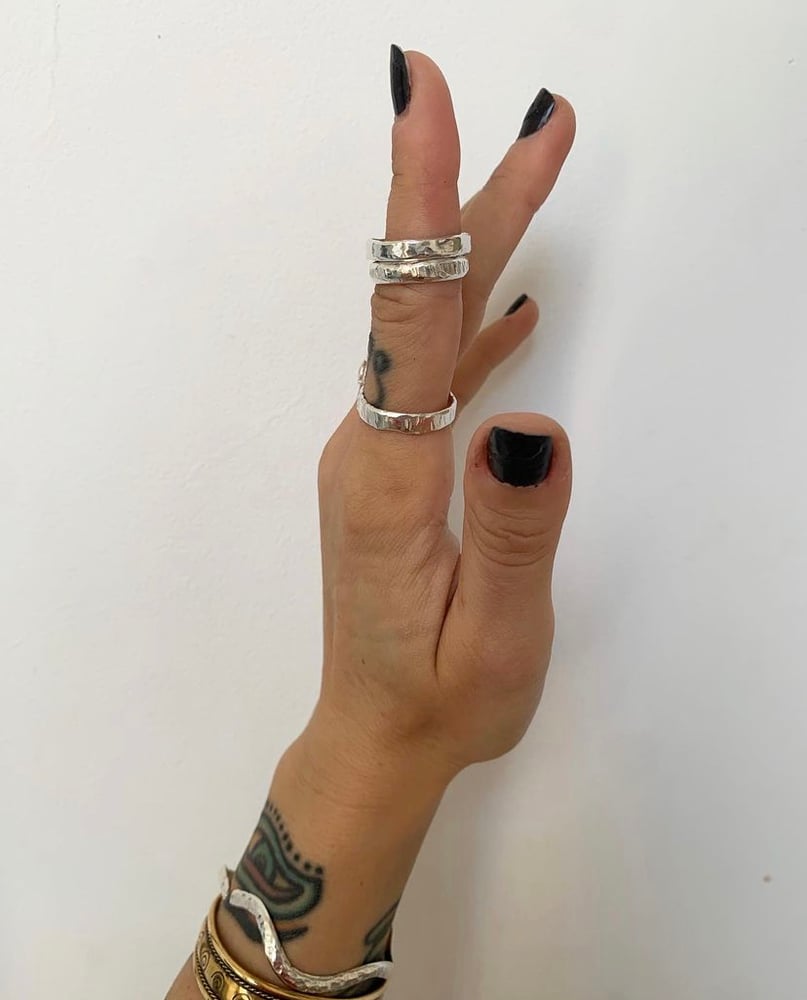 The physical act of hammering and scratching silver feels personal - it’s a direct result of the energy and intention of my own body. When I was making these rings I was experiencing strong emotions. I’ve been thinking of these rings as a physical container for these feelings.